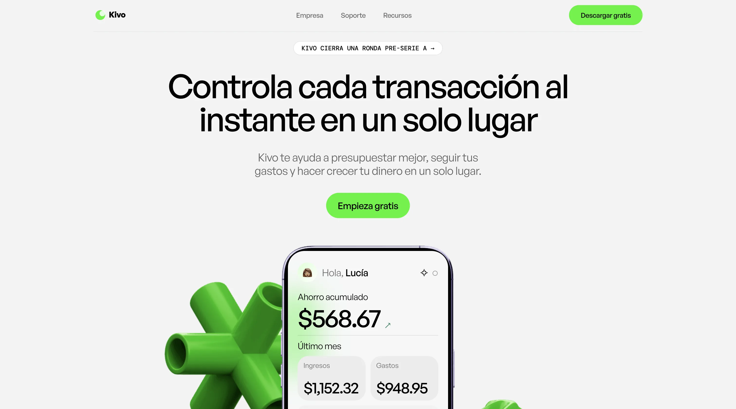 Una landing muy clara para una app de finanzas personales, pensada para que cualquiera entienda en pocos segundos qué hace Kivo y por qué podría usarla.
